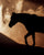 A horse's contour seems to emerge from an overall dark composition in which artificial fog was used for a theatrical and painterly effect. The horse is captured walking elegantly in reverse reading order, emphasizing the striking tension given by his calm and grounded posture profiled on the texture of the smoke that conveys dynamism and recalls the mess of any (inner) storm.