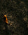 Aerial view of a tawny horse whose body is slightly lit by a sunbeam. Though the overall composition is predominantly filled with a muddy texture, the horse's gracious body is represented as if looking and moving toward the upper side of the image, where the light comes from. The anatomical body looks like a semi-relief on a texturized, dark background, resisting complete abstraction.